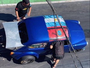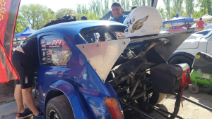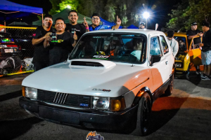 Angel se sube al clásico F600 y su hijo compite en Fiat 147 blanco.